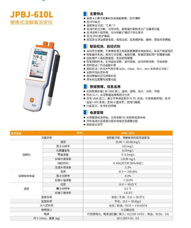 雷磁便攜式溶解氧測定儀JPBJ-610L 介紹
